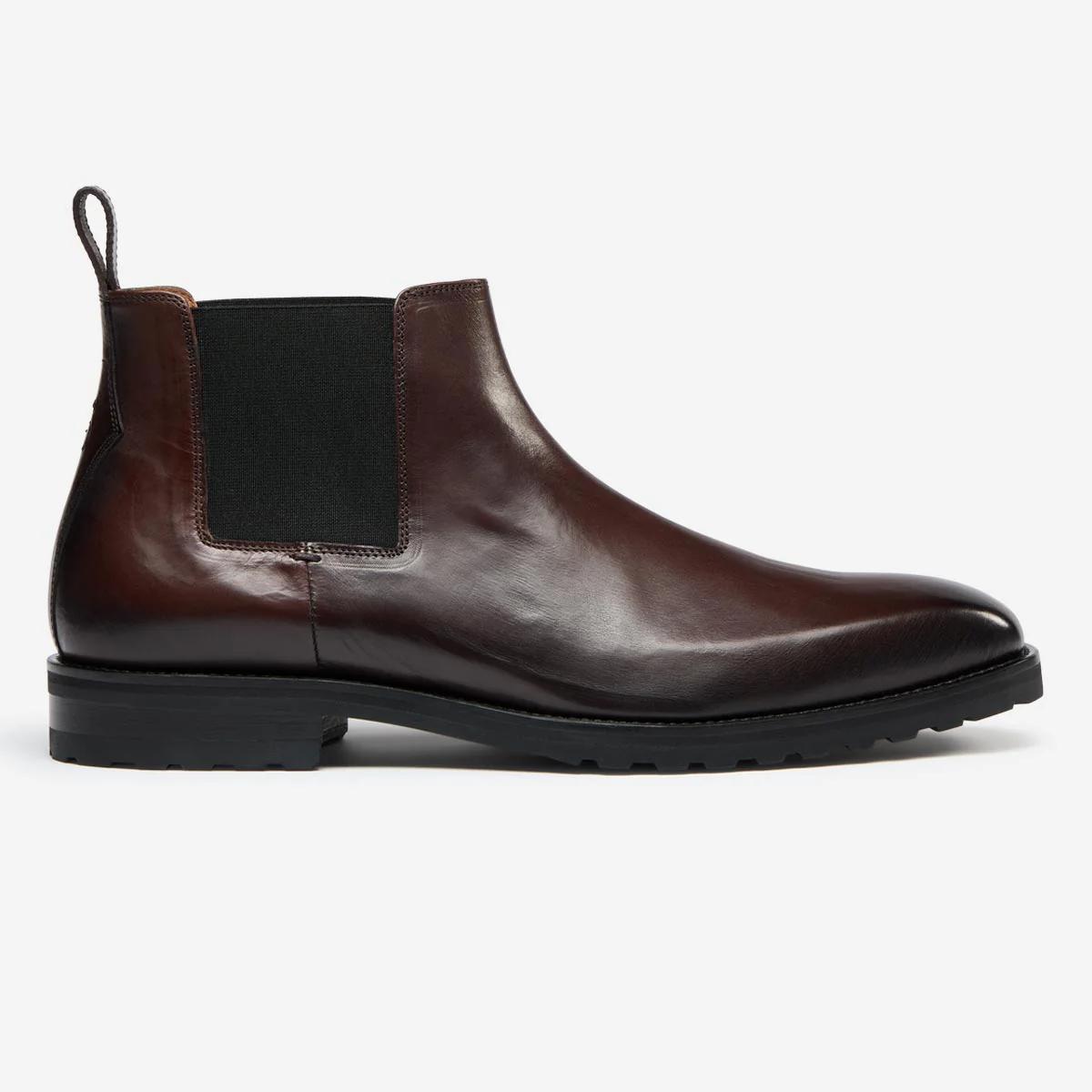 Set at a mid-height, which is slightly lower than a traditional Chelsea boot, Arditi is produced in our artisan factory in Italy on the Bologna construction. This replaces the traditional insole board with a leather 'sock' giving the boot greater flexibility and comfort. The dark brown calf leather has a smooth finish and is antiqued by hand. The twin elastic gussets are in a tonal black, and we've included a leather back pull tab and a full leather lining and insock. The upper is Blake stitched to the St Moritz sole - a practical, cleated rubber sole with a slim profile.