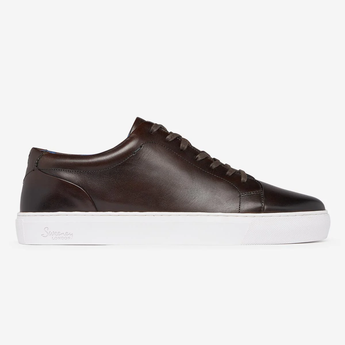 Our classic low-top cupsole trainer is made from brown Calf leather, antique finished by hand to build a real depth of colour. The upper is fabric lined with a padded collar lined in suede and a cushioned leather insock.