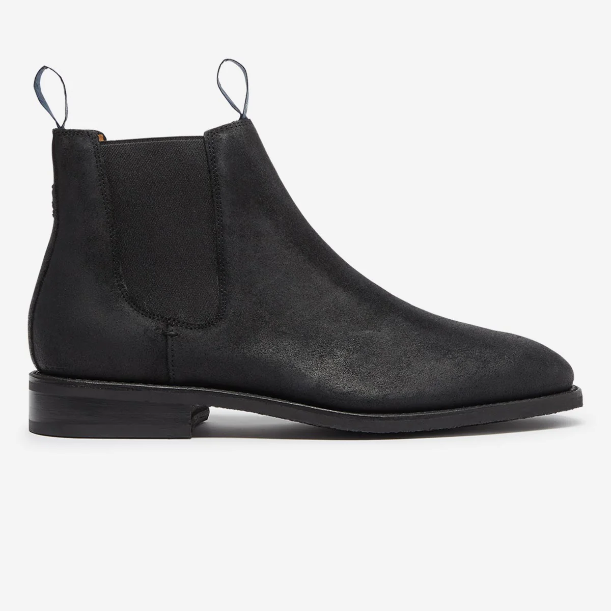 Our best-selling Chelsea boot is based on the Australian Outback classic, designed over 100 years ago for Ranchers. The Nero colourway is made from black Waxy Commander leather from the famous Stead’s tannery in Leeds. The calf suede uses a tanning process to shrink the fibre structure by 25%. The leather is then treated with a blend of natural waxes producing a stable, tight structure with a matt, textured finish and natural water resistance. The upper is fully leather lined, includes heavy duty elastic and our signature embroidered front and back pull tabs. The boot is Goodyear welted to a practical Vibram rubber outsole topped with a leather rand.