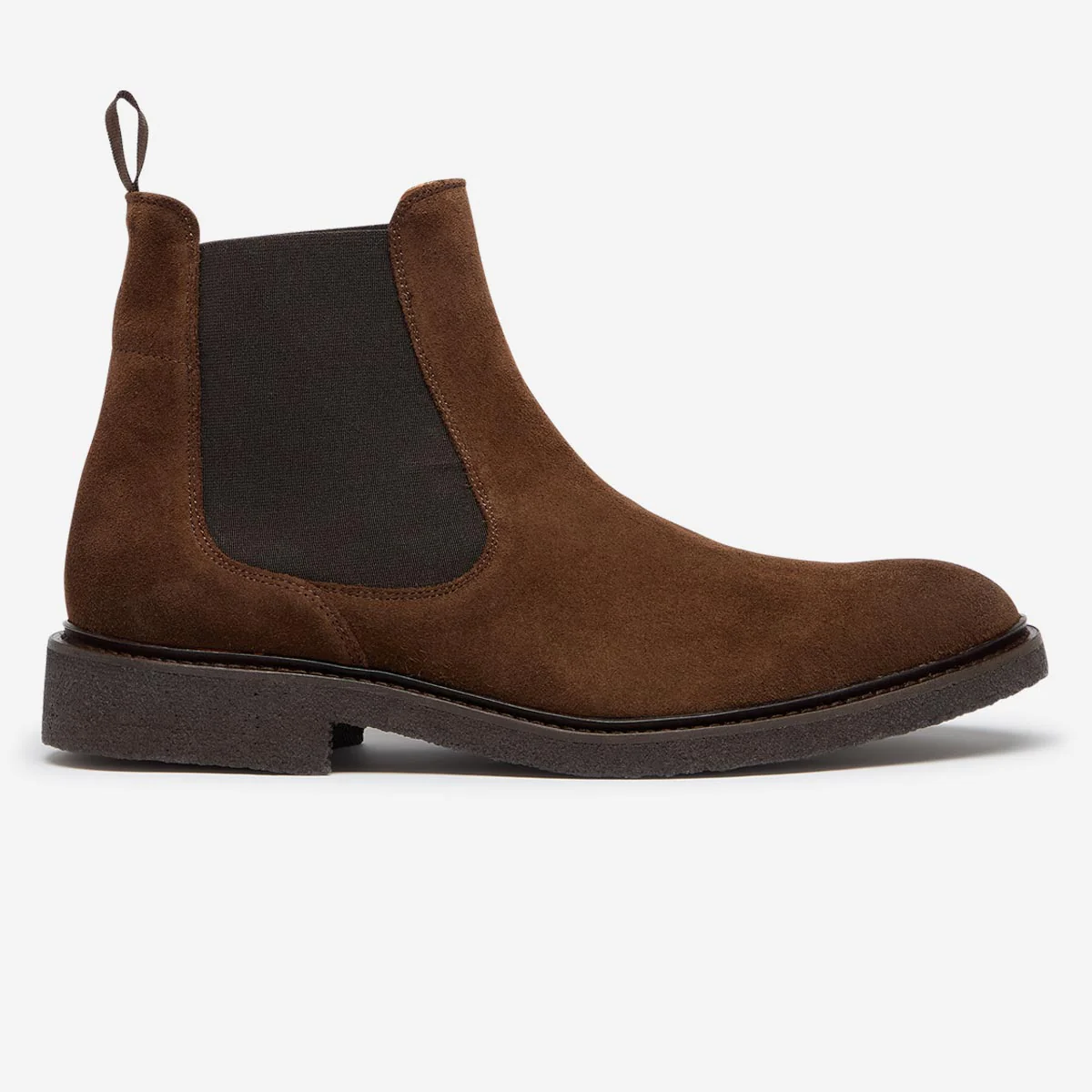 Our rugged Trancoso is a classic Chelsea boot design on a robust crepe rubber sole topped with a leather stitched rand. The soft brown calf suede upper is lightly waxed at the toe and fully leather lined with a half leather insock. Sturdy dark brown twin elastic gussets fit the boot close to the ankle and we’ve included a handy back pull tab.